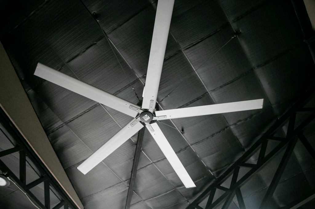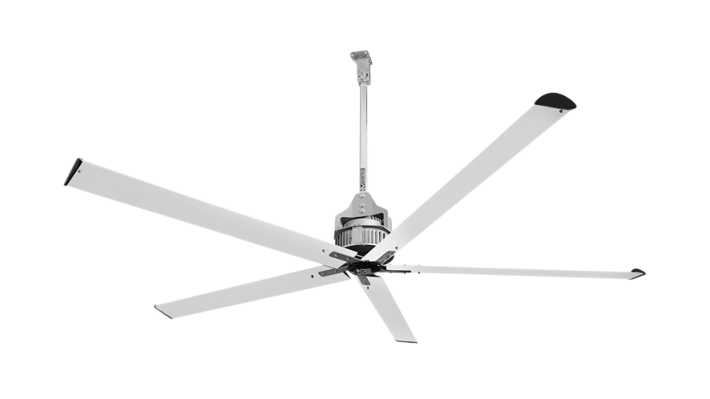 Gama de ventiladores de techo industriales HVLS (High Volume Low Speed) ideal para refrescar (en verano) y destratificar (en invierno) las habitaciones