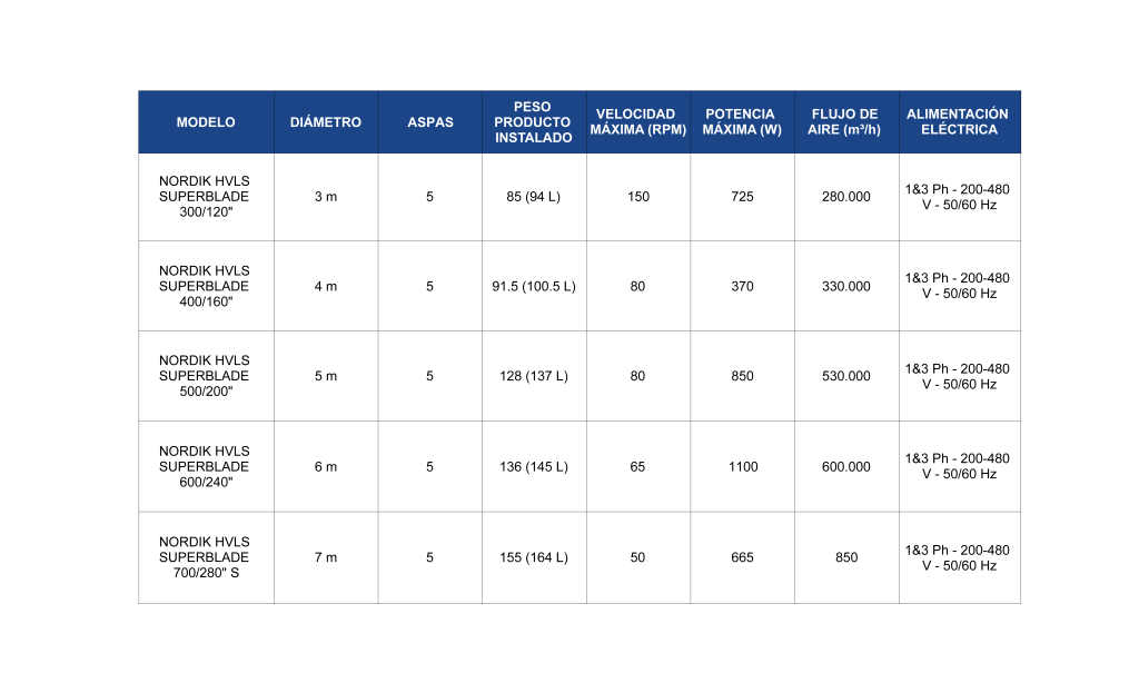 grandes. Su principal característica es lograr alto rendimiento de movimiento de aire a bajo consumo eléctrico.